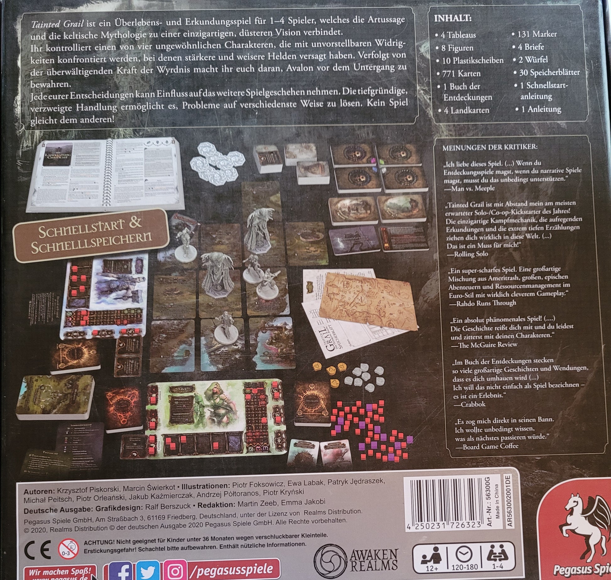 Bei Tainted Grail wählt jeder Spieler einen der vier einzigartigen Charaktere, von denen jeder andere Startvoraussetzungen und Fähigkeiten besitzt. Als Gruppe und auch auf eigene Faust bereisen sie Avalon. Sie interagieren mit Bewohnern, erkunden geheimnisvolle Orte, sammeln Nahrung und Kämpfen gegen zahlreiche Feinde. Bei den Kämpfen und Diplomatie-Begegnungen kommt eine innovative Kartenmechanik zum Einsatz. Immer wieder lesen die Spieler Abschnitte aus dem Buch der Entdeckungen und treffen Entscheidungen, die das Spielgeschehen beeinflussen. Dabei kann es manchmal wichtig sein, welcher Charakter in diesem Moment dabei ist.