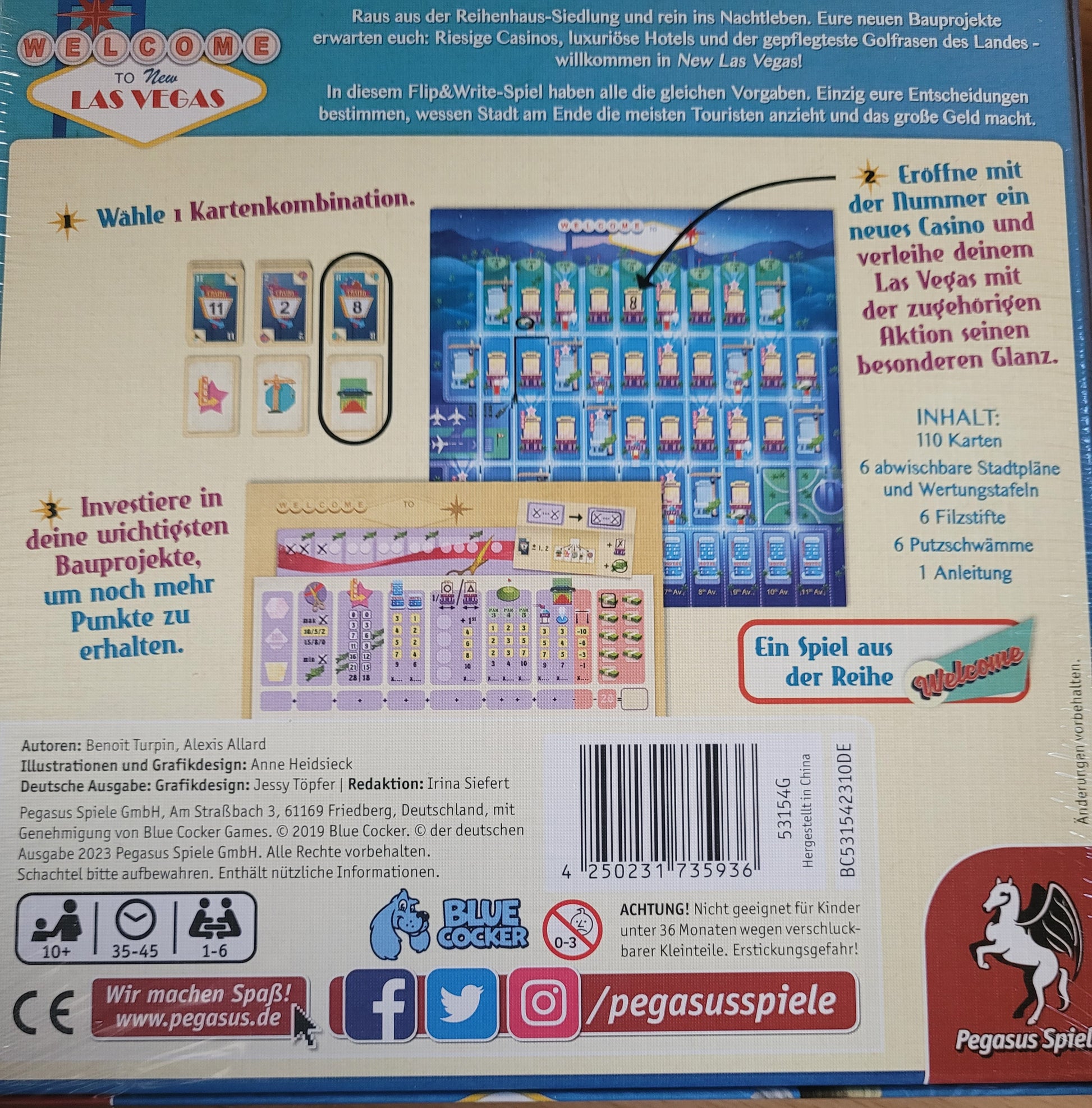 "Welcome to New Las Vegas" ist ein strategisches Brettspiel, bei dem Spieler ihre eigene Casino-Stadt aufbauen. Ideal für Tüftler und Fans von Planungsspielen, bietet es eine komplexe Herausforderung mit vielseitigen Entscheidungsmöglichkeiten. Es eignet sich für gesellige Spieleabende und fördert logisches Denken sowie Vorausplanung. Ein Muss für Liebhaber des modernen Städtebaus im spielerischen Format."